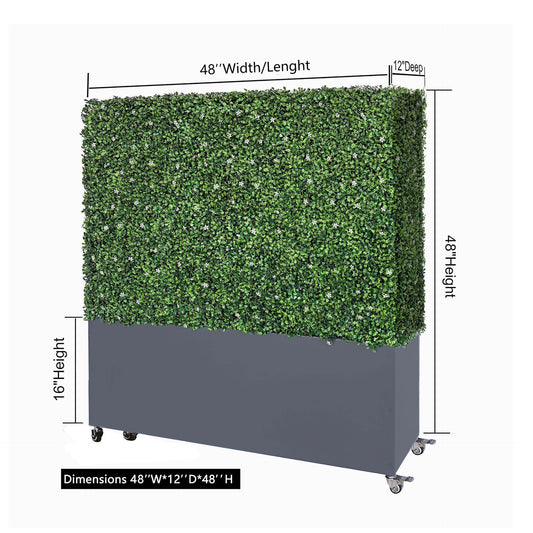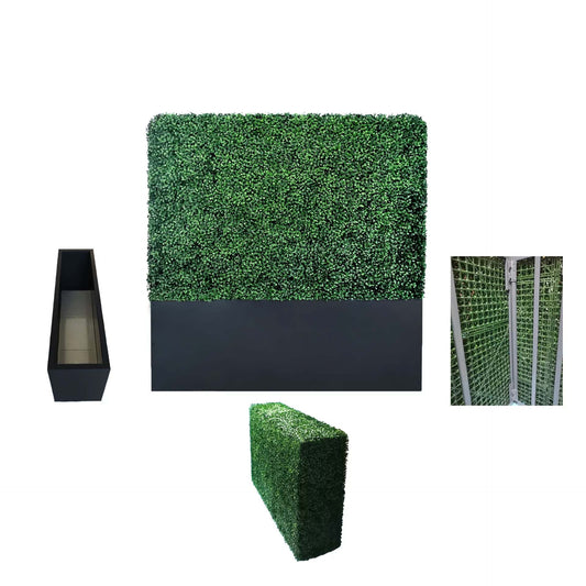 Artificial Boxwood Hedge Wall with Black Color Planter